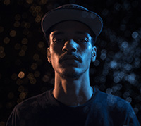 Photomontage of the portrait of a beatboxer called RYTHMIND